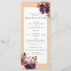 Följ dina gäster genom ceremonin med Bröllopsprogrammet Violet Meadows. Det moderna typsnitt och de ömtåliga violetta och vilda blommor mot en peachisk bakgrund fångar perfekt andan från ert botaniska temade bröllop. Ange en tänkbar färdväg och presentera din bröllopsfest med stil.