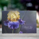 Snygg gäst bok i bröllop i lila, blått och grönt i vatten färg tittar bakgrund, med enastående grafik på en lila och gult färgad iris-blomma. Anpassa den vita texten fält, framtill, till kostym efter dina behov. Det finns tillgängliga produkter som matchar Ultra Violet Iris bröllop.