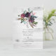 Burgundy plum red vin och mörk lila vattenfärgen blommigt rustic boho bohemian bröllop, inbjudan med accents of rosa anpassade to your event Specifications. Perfekt för varje tema eller trädgårdsbröllop. QR-koden på andra sidan går till din bröllop-webbplats där människor kan lära sig mer och osa.