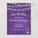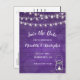 Rustic lila ultraviolet bröllop-sträng ljus sparar datumkorten med träkordets fotobakgrund med tvillingskena ljus och mynningen burk med ljus. Blanda och matcha det här bröllop spara datum med vår samling av matchande bröllop-papper och -tjänster.