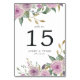 Garden chic-bordsnummer-kort har översta och grund-gräns av vattenfärgen ro och laktat i nyans av blekens lila och lavender, accentuerat med grönt botaniskt lövverk. Anpassa med bordsnumret, händelsemedatum och ytterligare anpassningsbar. Utformningen upprepas på baksidan. Koordinerar vår bröllopssviten för Violet & Sage blommigt.