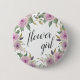 Identifiera spelarna i nyckel vid din möhippa med våra knappar för blommigt av elegant, med god chic. Knappen har rosa och violett lila vattenfärg blommor och grönt löv, med "Blomflicka" inskriven i kalligrafiskript.