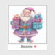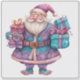En glad Jultomten som är klädd i ett vibrant violett jackar och som innehåller en mängd vackert inlindade gåvor.