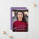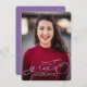 Gratulera till student i stil med detta enda fotomeddelande från studenten. Den har ett fullt-blekt foto med violett faux-folie-skript över den. Student namn, år och namn är alla redigerbara.