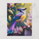 Violet Tuftad Gult Brast Fantasy Bird Vykort