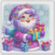 En glad lila har färgstarka gåvor mot en snöig bakgrund.