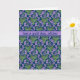 Ett hälsningskort för söt Mors dag, med hälsning i Skottland och mönster i violetta på mörk blått bakgrund, från en färgmålning av Judy Adamson. Den här designen passar alla tre hälsningskortens storlekar.