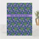 Ett hälsningskort för söt Mors dag, med hälsning på spanska och mönster på violetta på mörk blått bakgrund, från en vattenfärgsmålning av Judy Adamson. Den här designen passar alla tre hälsningskortens storlekar.