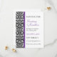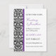 Ett svartvitt damast tapetmönster tillsammans med kungliga lila accenter tjänar till att framhäva denna inbjudan. Lätt att anpassa med ditt/dina namn, evenemangsdatoch information. Baksidan är medvetet lämnad tom. Finns i alternativa färger med matchande förmånstagare, vykort och inbjudningar