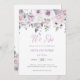 De här vackra bröllopsinbjudningarna i blommigten har vattenfärg, , mjuk lila och vita blommor med gott om botaniska löv och elegant lätt lila.