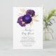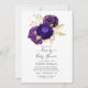 Violett och lila blommig baby- eller bröllopsdrive by-duschinbjudan med guldaccent, anpassningsbar till ditt evenemang.