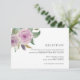 Elegant blomsterbröllopsmottagningskort i chic ton av pastellfärg lavendel lila och salvia grön har en akvarell blomsterbukett i det övre vänstra hörnet, med din mottagningsinformation i klassisk svart bokstav. Anpassa med din bröllopsmottagning information inklusive tidpunkt, lokal, adress och eventuell ytterligare information som transport eller parkering.