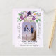 En modern och elegant Spara datumet för ett bröllop. En lavendel vattenfärgad bakgrund, dekorerad med violetta och lila blommor. Anpassa och lägg till ett datum och era namn. Texten: Spara datumet är skriven med en stor trendig handskriven stil. 1 ark = 1 spara datumet tryckt kant till kant.
