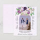bröllopspara datumviolettlavendel färgadlilablommorvalvbåge fotolampaskript typografielegant och modernbudget spara datumet