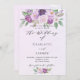 En violett, vattenfärgad lavender-bakgrund. Dekorerad med violett och lila vattenfärgade blommor och grönsak. Anpassa och lägg till information om namn och party.