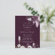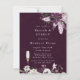 Designen har ett tryckt färgschema med blomsterelement i nyanser av lila, violett, syren och vitt över löv och peon på en lila akrylfärg bakgrund.. Perfekt för din bröllopsfirande!