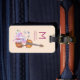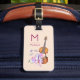 Ett bagagemärke med mjuk lårbenskonstruktion. Illustrerad med en vattenfärgsbild av en violin av trä, en del rosa ballet tofflor som vilar mot den och dekoreras med blommor och fjärilar. Ställ in på en persiko-rosas färgad-bakgrund.
