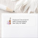 Adressetiketter med feminin utformning. Illustrerad med en vattenfärgsbild av en violin av trä, en del rosa ballet tofflor som vilar mot den och dekoreras med blommor och fjärilar.
