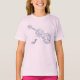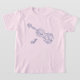 En blå linje teckning av en fiol som innehåller kalligrafisk blomning och dekorativa scrollsar hamnar på en vinkel över denna t-shirt. En mycket dekorativ initiering visas också. Den kan tas bort eller redigeras efter dina behov i kostym.