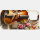 Watercolor ai-konst som skildrar en violin som lutar sig mot väggen, lakan-musik och ett glas vas av blommor.