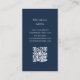 Affärskortet Musician Performer, med en unik violin-bild på en marin blå och vit bakgrund. Vita och svarta bokstäver kan anpassas med din information. Baksidan har en QR-kod som du kan använda för att använda eller ta bort. Underbar för att befordra ditt musikföretag eller din orkesterkarriär!