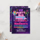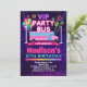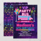 Fira en VIP-födelsedag med denna regnbågsglödande rosa partybussinbjudan för tjejer.