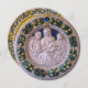 Elegant klassisk,vibrant Renaissance bra art,mästerverk från Bottega della Robbia ( Florens - Italien ) i vitt,blått,grönt,brunt färg.En antikvitets lekplats i blå himmel på en ljus gult,grönt dekorativ dekorativ blommigt krona ..Konstnärlig design med en ljus 3d Blue sapphire gem-sten.