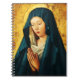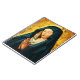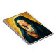 Bakgrunden till den rena och mörken står i kontrast till Virgins strålande boghuvud och den vita heaadressen som täcker den, och hennes händer är försiktigt försluten tillsammans