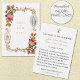 Vår Dam av Grace på den Miraculous Medical med rosa ros. En bön är på baksidan för bruden och brudgummen. Alla texter och typsnitt kan ändras.