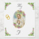 Utformningen har en vacker bild av Vår Dam i Fatima som en oval i mitten. Bilden av känslig rosa och vit ros utgör ett ram. Initialer av Bride och Groom visas överst med det monogram av efternamnet som visas i grund. Bilden av det gyllene bröllop ringar gått med tillsammans visas nedan och till lämnat om ovala. Lämna och högernas hörn i grund ligger vid gränsen till bilder och i grönt. Designad att samordna med "Virgin Mary Catholique Bröllop Suite".