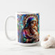 Virgin Mary med Baby Jesus i ett stil av nedfläckad i en tegelmosaik. Lättt, vackert och färglöst kaffe kopp.