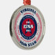 Visa er stolthet i julhelgen med denna unika julprydnad som är tillägnad Virginia, den tionde staten. Det har rött, vitt och blått patriotiskt färg med en cirkelformad typografi på vit bakgrund. Texten innehåller uppgifter om staten, t.ex. namn, huvudstad, statsförkortning, region, zona tidskoordinater, geografiska koordinater, året för dess självständighet och den bofasta namn. Det är en underbar gåva till dem som vill fira sin stat eller till dem som känner sig nostalgiska över sin hemstat.