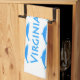Ljusa blåttdelfiner visas i detta nautisk-themed Virginia Beach, Va-logotyp. Delfiner är gemensamt - sett längs den Virginia Beach oceanfronten.