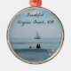 Blue vatten och himlar, med människor i förgrunden och en segelbåt i bakgrunden. Budskapet lyder: "Vackert Virginia Beach, Virginia" Underbar souvenir från din strandsemester!