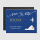 Du valde ett speciellt ställe för bröllop. Nu är det dags att fira det med det här keepsaket spara datum magneter-kortet, med en silhouette karta och en liten flygplan på väg till ditt mål. Om du vill flytta hjärtat till ställe i bröllop klickar du på personalisera och "anpassa ytterligare".