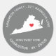 Unikt tillstånd för VIRGINIA Nytt klistermärke för hemadress på en grått-bakgrund med rött hjärta och flygplan.