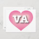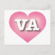 Det här vykortet har ett rosa i coolan med ett vitt tvättat centrum som innehåller det feta, vita, övre fodral brev VA, officiellen förkortning för Virginia, det gamla dominiontillståndet. Kortets baksida är tom och väntar på personligens text eller handskrivna känslor.