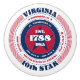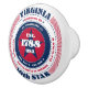 Dekorera ditt hem eller företag med den här unika keramiska knoppen som har en röd, vit och blå cirkelformad typografi med fakta om den amerikanska delstaten Virginia. Det blev en stat 1788 och är den tionde stjärnan. Dess kapital är Richmond, och dess förkortning är VA. Andra intressanta fakta är dess region, zona tidskoordinater, geografiska koordinater och namn.