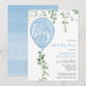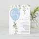 Virtuell baby shower pojke blå ballonger eukalyptu inbjudningar
