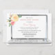 En virtuell babydusch är en perfekt när nära och kära inte kan vara tillsammans, men ändå vill duscha föräldrarna för att vara med kärlek och gåvor för att förbereda deras baby. Den här inbjudan innehåller en illustration av en vattenfärgad bärbar dator med rosa och gula blommor i designens övre hörn. Anpassa med din information eller klicka på "Klicka för att anpassa ytterligare" för att redigera teckensnittet stilar, storlekt och färg.