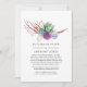 Öken succulent kaktus-tematiserad reducerad bröllopsinbjudan. I dessa osäkra tider kan det hända att du måste hålla ett mindre bröllop än vad som ursprungligen planerats. Detta bröllopskort tar bort det pinsamma och tar en tyngd av din hjärna! Du kan dessutom ge ett alternativ att delta i en virtuell ceremoni.