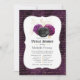 Lila, svart och guld gotisk virtuell lång avstånd inbjudningskort för möhippan med ro med vintage kalligrafi mönster och läppar på motsatt sida.