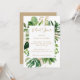 Modern botanisk virtuell babyduschinbjudan med dina detaljer inuti ett geometriskt ram omgivet av vattenfärgade tropiska grejer och faux guld löv. Baksidan är en matchande guld-ton. Den här inbjudan till eleganten är underbar för en virtuell babydusch när man inte kan träffas personligen.