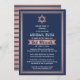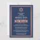Oavsett om vänner och familj utövar social distansering eller bara bor långt bort, kan du knyta an till dem online med en virtuell bat mitzvah-ceremoni och firande. Denna stilrena moderna inbjudan innehåller formulering för ett långdistans online-evenemang via internet-videokonferens och livestreaming. All text är enkel att anpassa, så att den kan innehålla information om ceremonin, Toraläsning och fest. Formuleringen för mottagningen är enkel att anpassa till en drive-by-bilparad, bakgårdsfest eller annan evenemangstyp. (TIP FÖR BILDPLACERING: Ett enkelt sätt att centrera ett foto exakt som du vill är att beskära det innan du laddar upp det till Zazzle-webbplatsen.) Designen har en rosa falsk roséguld-folie Davidstjärna, marinblå