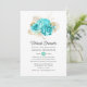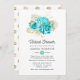 Möhippa eller inbjudan till babydusch för Aqua och faux foil blommigt med guld eller för spädbarn med accenter av tealt anpassade till dina händelsespecifikationer.