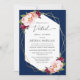 Även när man inte kan komma samman personligen kan man ändå träffas praktiskt taget. Här är en elegant för din kommande möhippa. Den här designen har fina rosa och burgundi ro buds tillsammans med möhippan i anpassadet som omges av ett trendig faux guld foil geometric ram över en elegant marin blå bakgrund. Kortets baksida är också marinblå. Se hela bröllop-sviten för andra produkter som bär denna design. Om du har en designfråga eller vill se den här designen på en annan produkt kan du kontakta mig på jschmidtdesignworks@gmail.com. Design © Judith Schmidt.