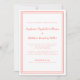 Virtuellt bröllop livestream-inbjudan har en enkel samtida minimalistisk design med en dubbel ramkant i levande korall på en skarp vit bakgrund. Traditionell formulering ger tidlös men modern förfining. Anpassa bröllopsdesignen med dina livestream-detaljer i chic korall-bokstäver och skript. Baksidan av kortet matchar i solid levande korall.