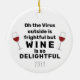 Visa lite humor under helgdagarna med detta virus Utanför är en lättsinnig julpun Ceramic Ornament. Det är en typografisk design på båda sidor med fet svart text på vit bakgrund. Två små vin-glas finns på vardera sidan av texten. Den roliga pun är "Åh viruset utanför är skrämmande, men vin är så härligt" följt av anpassat år. Klicka på alternativet Anpassa och ange år.
