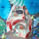 Virvlade runt biet i skiktrött till korall och lax med delar av silvrets grönt.