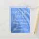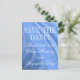 Virvlande blå satäng bröllops-Spara-datum Vykort